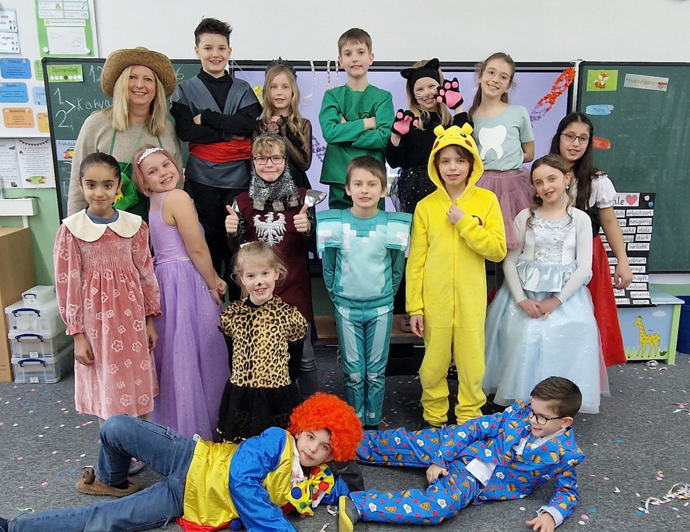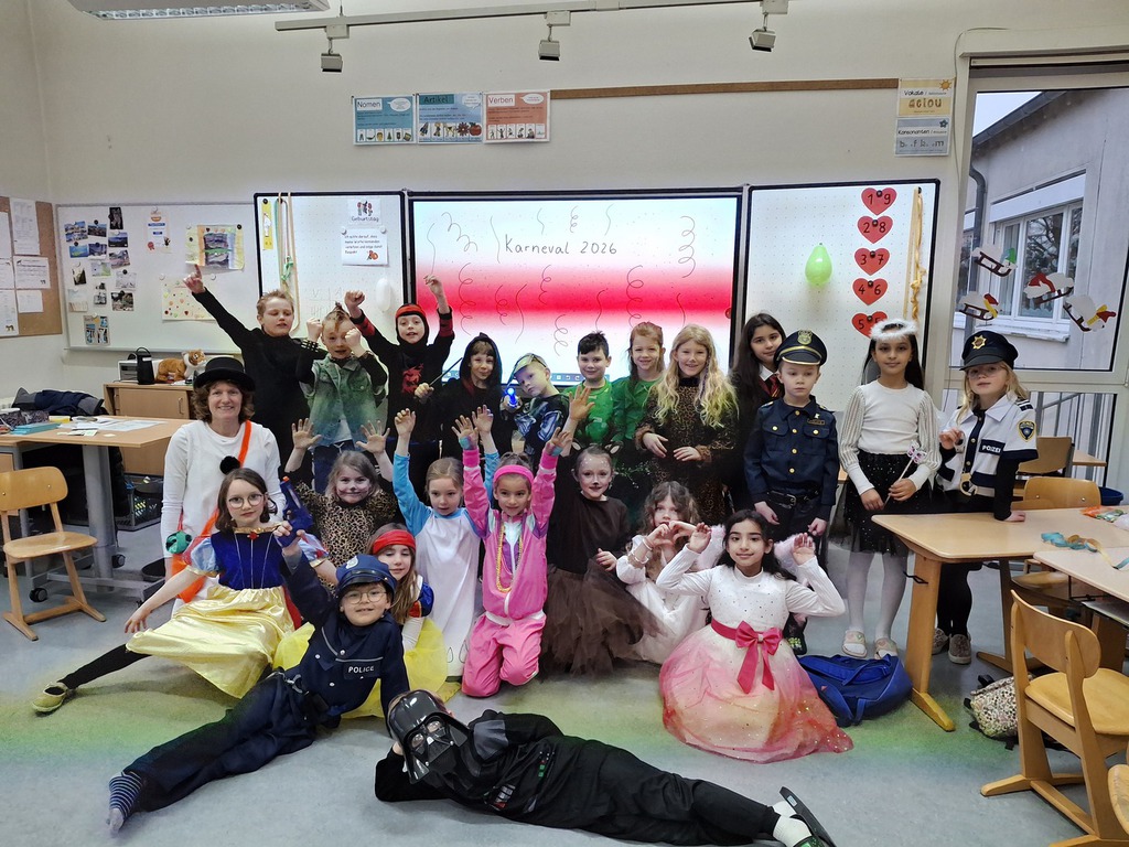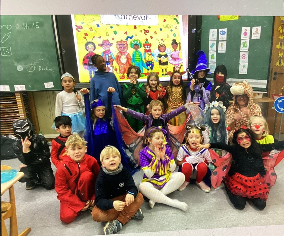 An unserem gemeinsamen Karnevalstag verwandelte sich das Schulgebäude in einen Ort voller Lebensfreude und bunter Farben. Statt des gewohnten Unterrichts standen Spiel, Spaß und kreative Verkleidungen im Mittelpunkt des Vormittags.