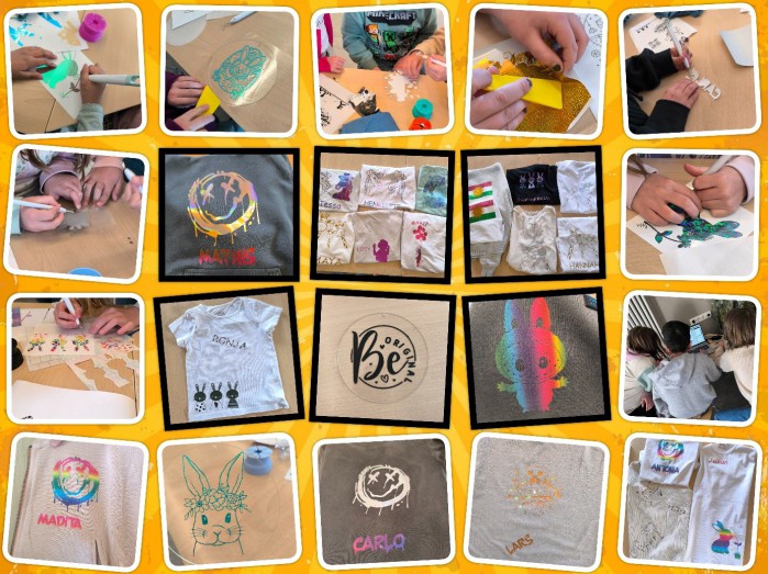 Die Kinder konnten wählen, ob sie ein eigenes T-Shirt gestalten oder schicke Acrylglasscheiben verschönern wollten. Dabei lernten sie ganz nebenbei die technischen Unterschiede der Materialien kennen: